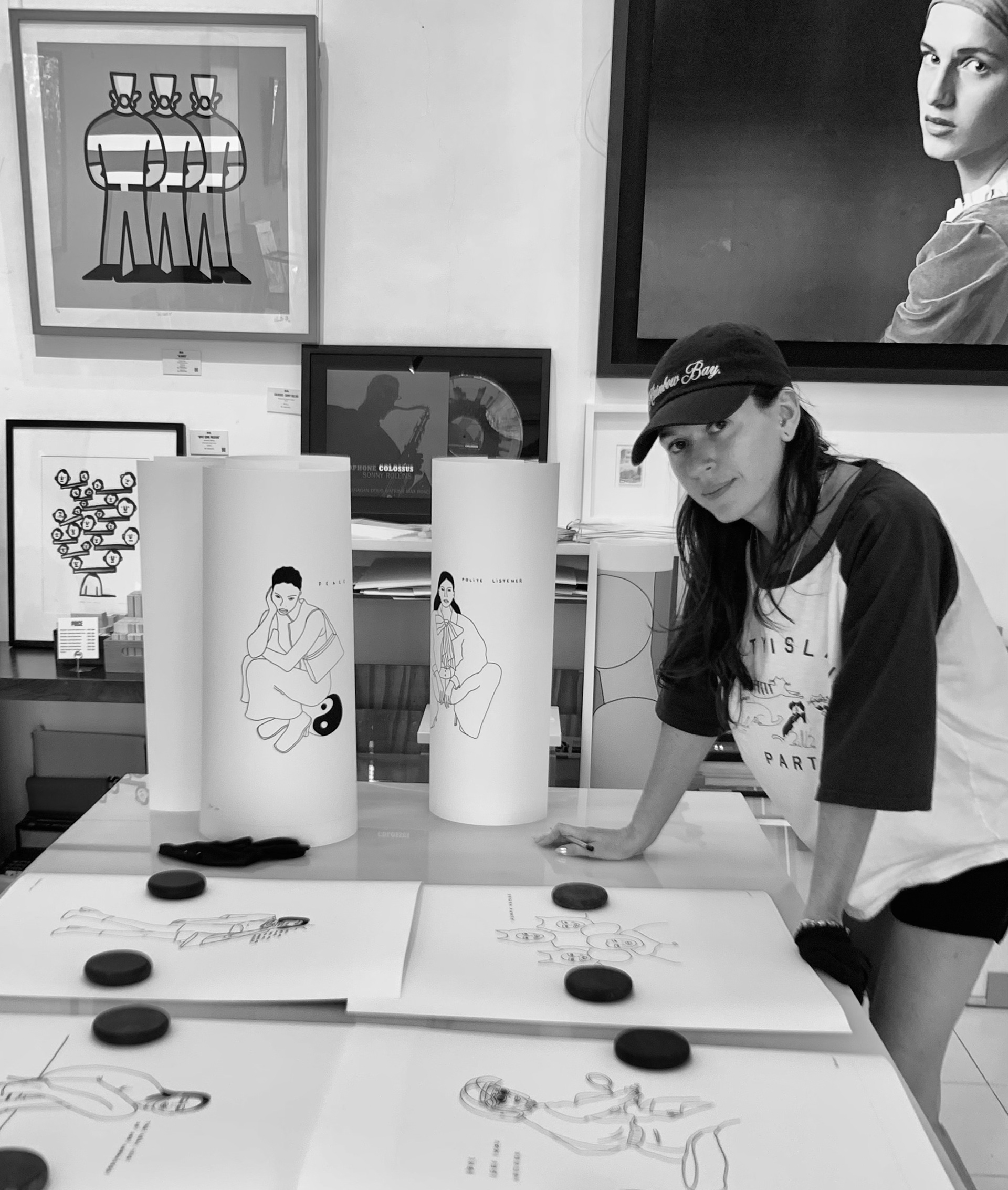 There is a tension in her work, where tenderness meets irony, and the melancholy of the Russian soul dances with a biting humor. Her compositions feel both ancient and contemporary: love stories etched with fragile lines, surreal vignettes punctuated by truth, the human and the cosmic entwined.